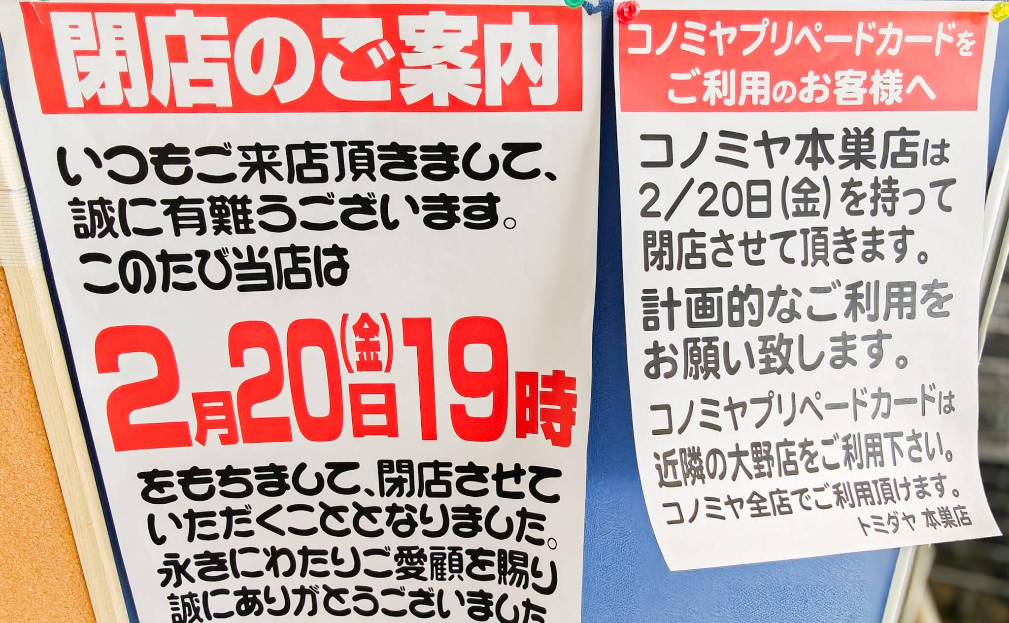 トミダヤ本巣店が2026年2月20日に閉店。33年8か月の歴史に幕を下ろす店内の売り尽くし状況や、地域に愛された「トミダヤ」バス停の様子など、最後の姿を現地レポでお届けします。