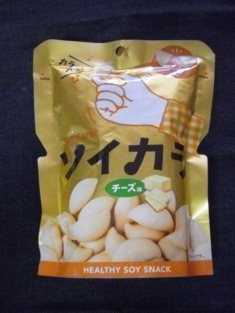 - おっとっとのような皮の中に小さな粒が2つはいっていて、振るとカラカラ音がするお菓子。大豆を主原料としたお菓子。揚げていないのでカロリーも低い。